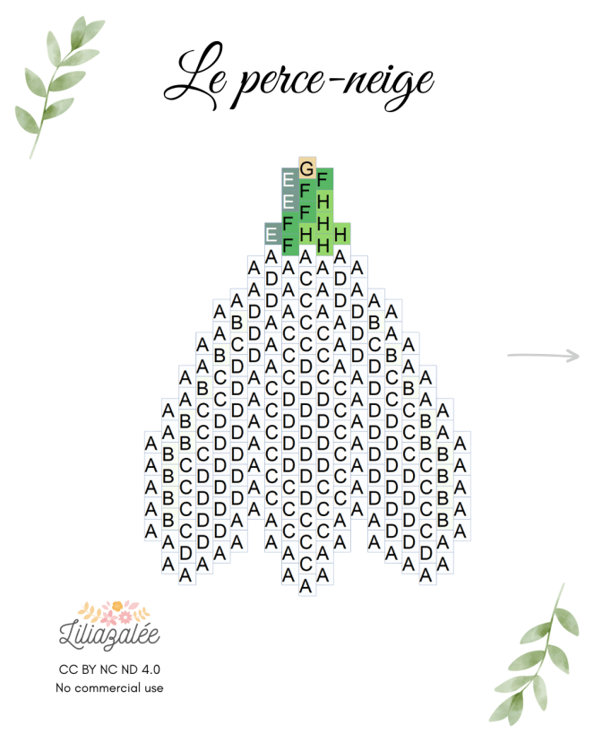 Après un long mois de Janvier, voici enfin les prémices du printemps…Malgré une météo encore souvent pluvieuse, on peut voir quelques bulbes sortir de terre, des bourgeons qui naissent… Je vous partage ma première version du perce-neige. La suivante sera avec la tige et les feuilles. Bon tissage !